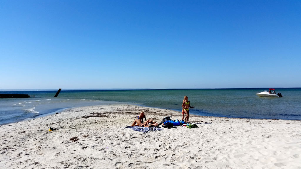 Obok dwóch wraków okrętów powstały duże przestrzenie płytkich wód o bajecznym kolorze. Doskonałe miejsce dla kąpieli milusińskich i wypoczynku rodziców. Plaże również są mało popularne ze względu na odległość i nawet w szczycie sezonu spotkasz na nich niewiele osób, znajdując dużą przestrzeń swobodnego wypoczynku i ciszy.